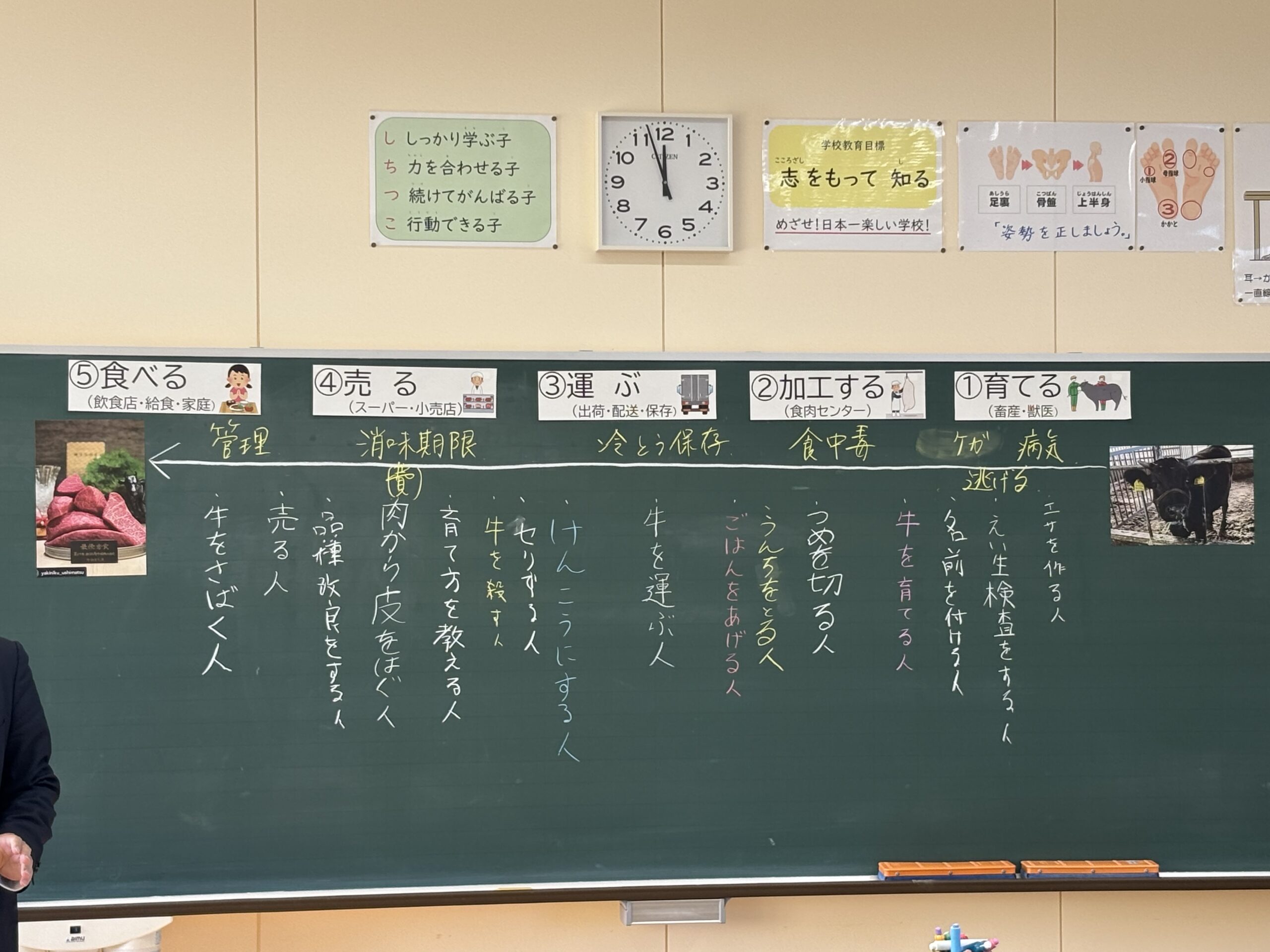 高学年生は、流通過程のトレサビリティや携わるお仕事について学び、このあと給食で食べる淡路ビーフを実際に育てた農家さんの話が聞ける食育授業他にないですね。